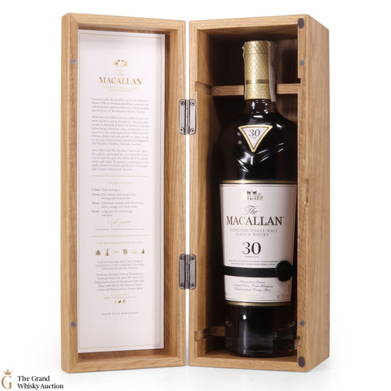 This 2018 release from The Macallan is aged exclusively in Oloroso sherry seasoned casks from Jerez for all thirty years of its maturation. Resultingly, it is said to have a beautiful Oloroso sherry presence after this extended ageing. It is a naturally dark, Speyside single malt full of rich dried fruits, spice and wood smoke.