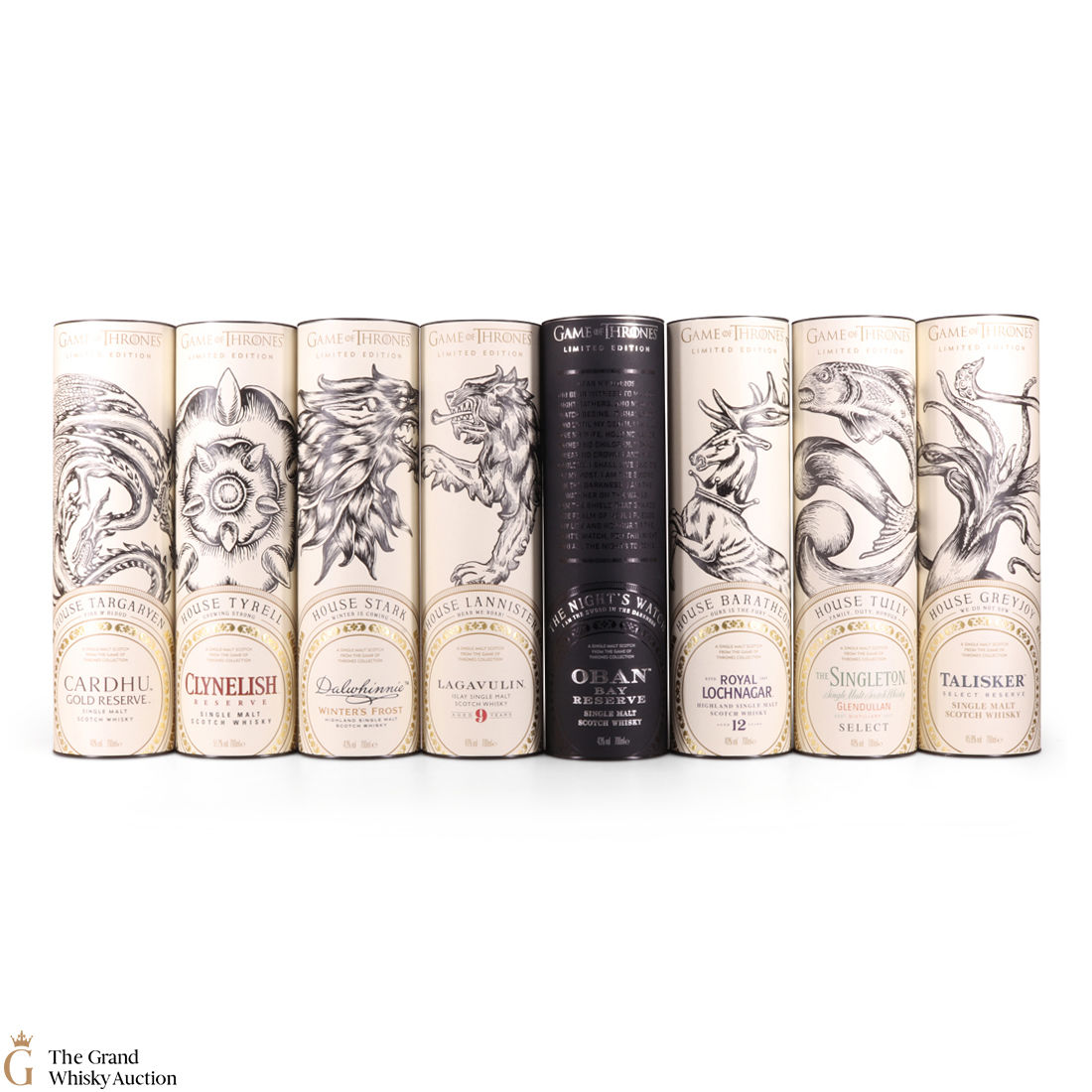 Each of the Game of Thrones Scotch whiskies has been paired with a particular house from the seven kingdoms in the television series, plus the Night’s Watch guard.