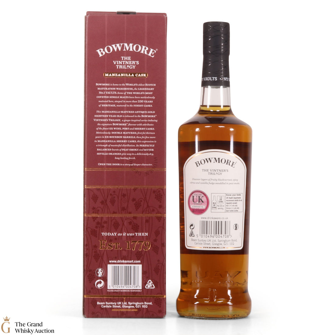 Due to the various ages of bottles and their seals, the condition of liquid is at the buyer's discretion and no claim can be lodged against failure/leakage in transit. Loss and breakage cover is available at 3% of the hammer price as standard. If the lot is not insured, no claim can be lodged against the courier or The Grand Whisky Auction for breakage or loss in transit.