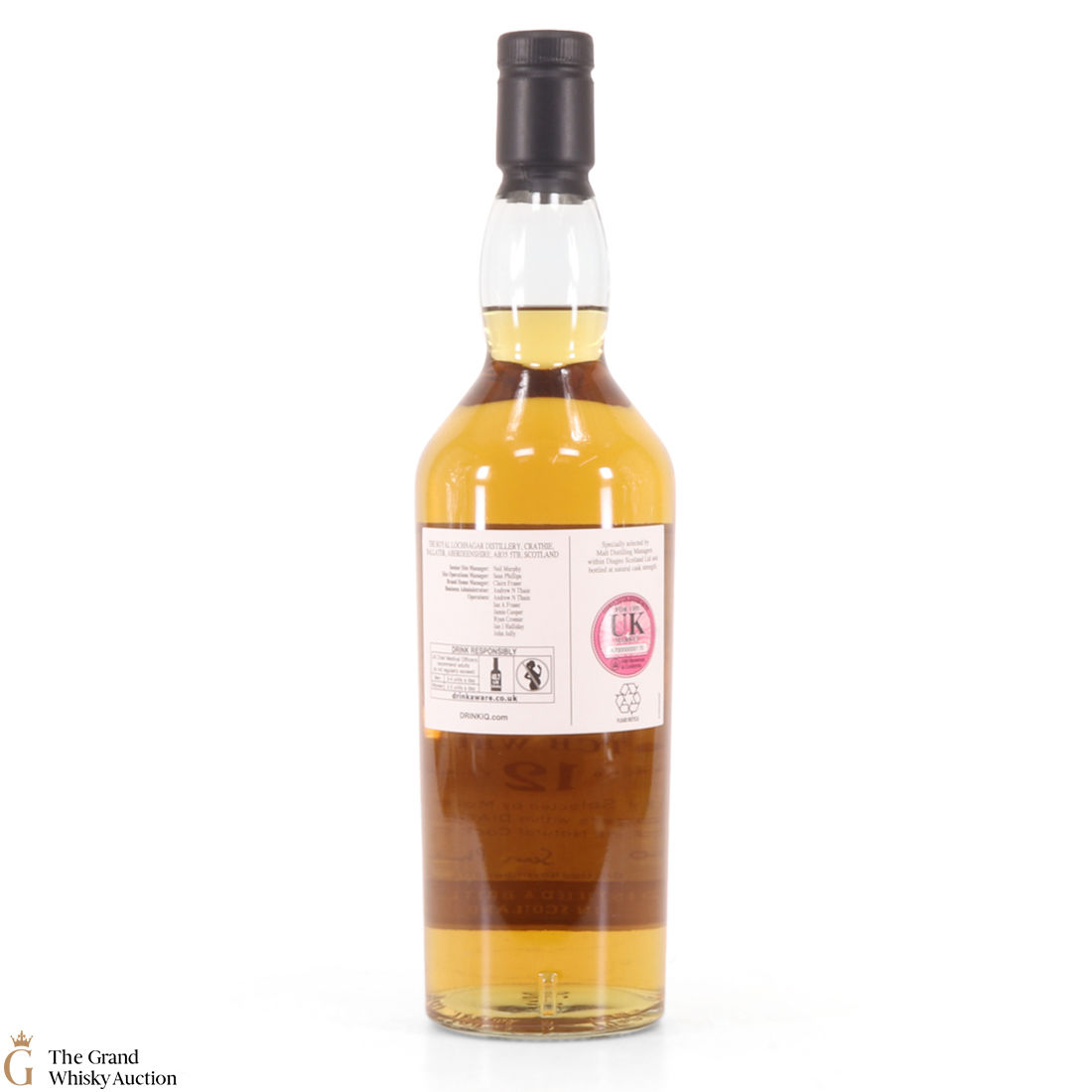 Due to the various ages of bottles and their seals, the condition of liquid is at the buyer's discretion and no claim can be lodged against failure/leakage in transit. Loss and breakage cover is available at 3% of the hammer price as standard. If the lot is not insured, no claim can be lodged against the courier or The Grand Whisky Auction for breakage or loss in transit.