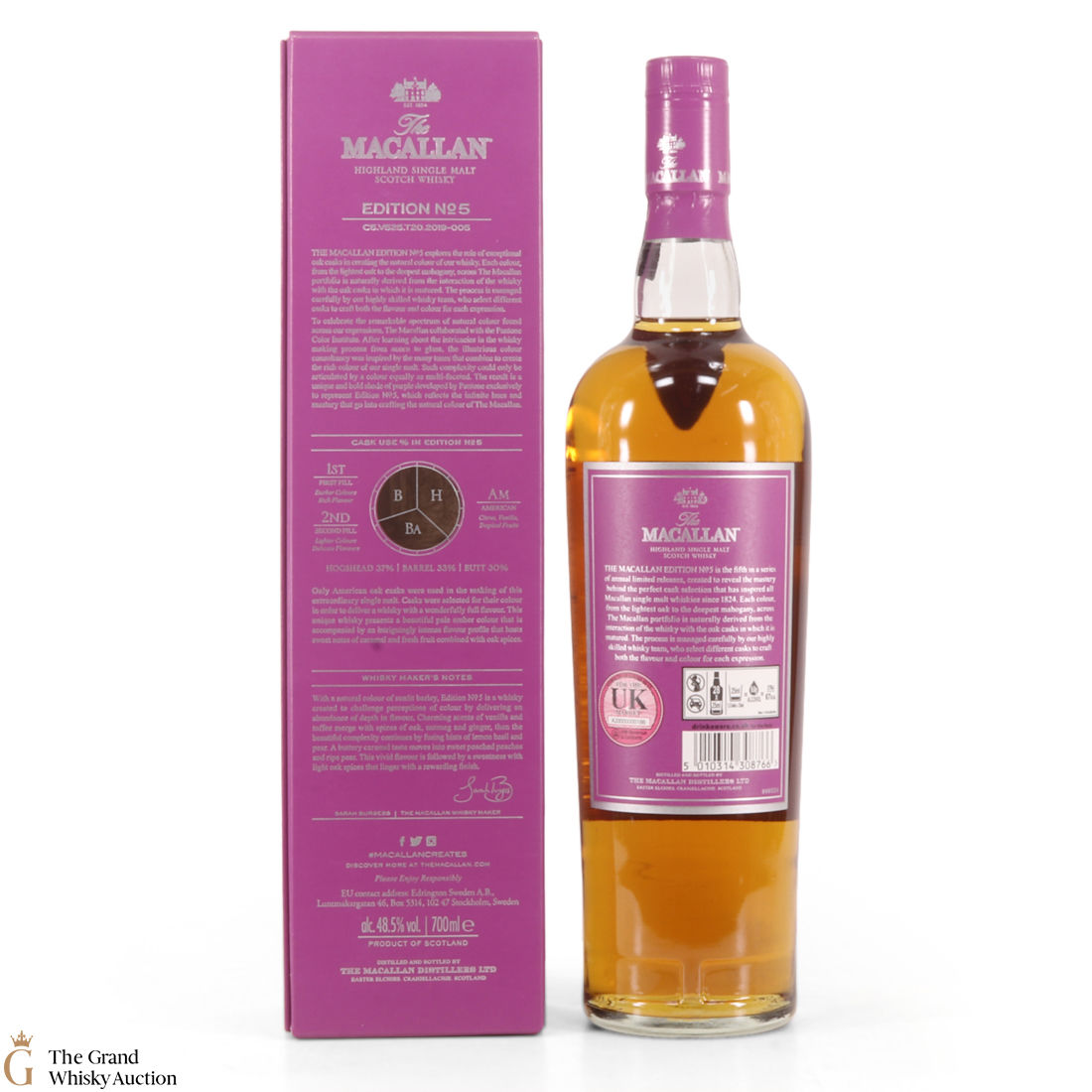 The fifth release in the Edition Series from The Macallan, The Macallan Edition No. 5 celebrates The Macallan’s extensive natural colour spectrum and the intricate whisky-making process, in partnership with masters at the Pantone Color Institute™ to create a unique shade of purple that features on the packaging.