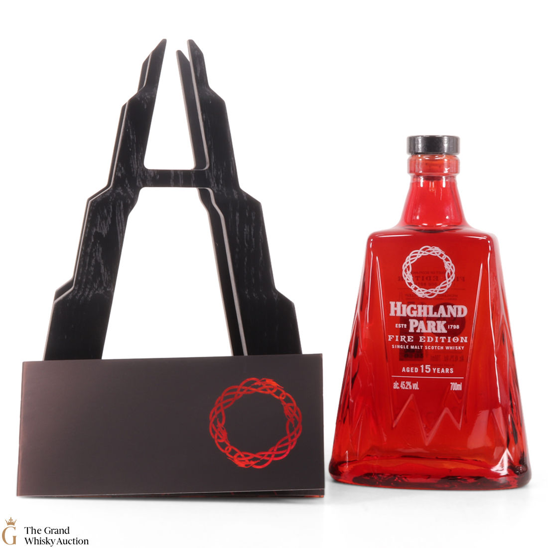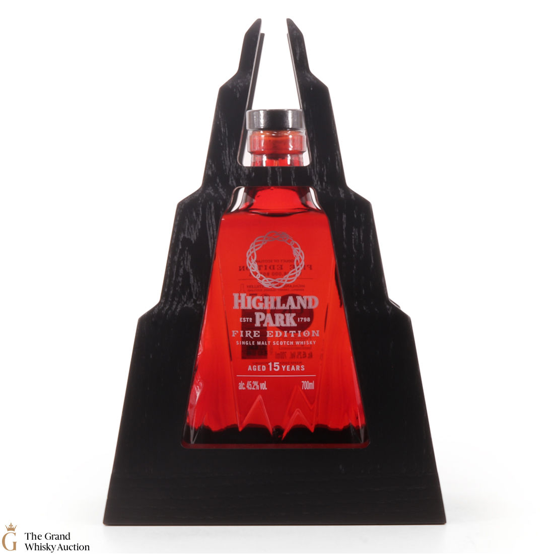This stunning Highland Park 15 year old single malt follows the 'Ice' edition to complete this Highland Park two-part series. The 'Fire' edition celebrates Muspelheim, the glowing Norse fire realm of destruction. The malt was matured in refill Port casks and bottled at 45.2% abv. It's presented in a cradle shaped like a mountain.