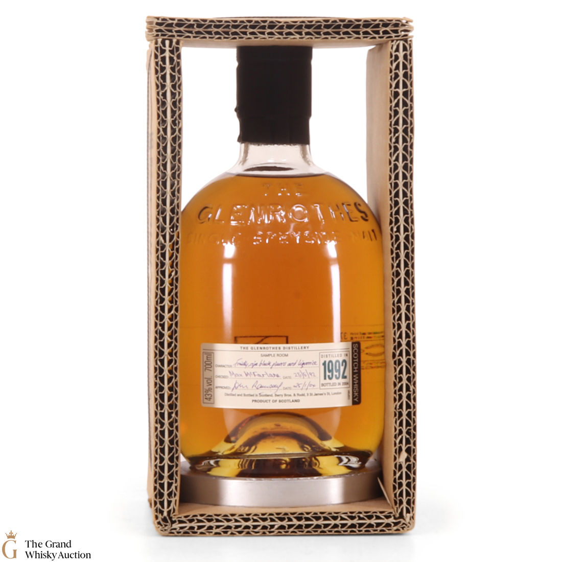 Due to the various ages of bottles and their seals, the condition of liquid is at the buyer's discretion and no claim can be lodged against failure/leakage in transit. Loss and breakage cover is available at 3% of the hammer price as standard. If the lot is not insured, no claim can be lodged against the courier or The Grand Whisky Auction for breakage or loss in transit.