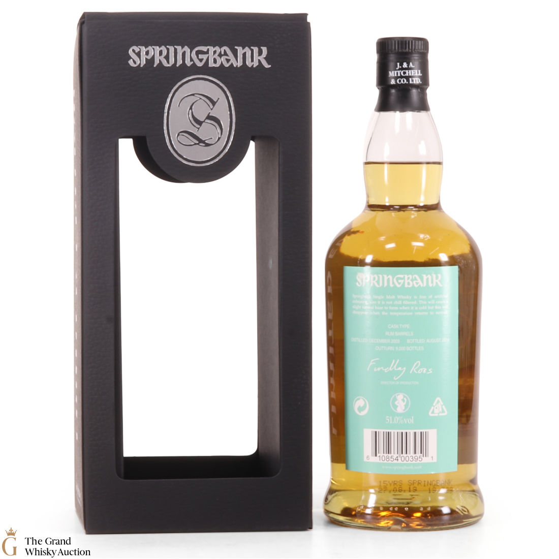 This is a limited edition, single malt Scotch whisky from Springbank distillery bottled and released in 2019. The whisky was fully matured in rum casks for 15 years. Bottled at a cask strength of 51.0% this is one of only 9,000 bottles released worldwide.