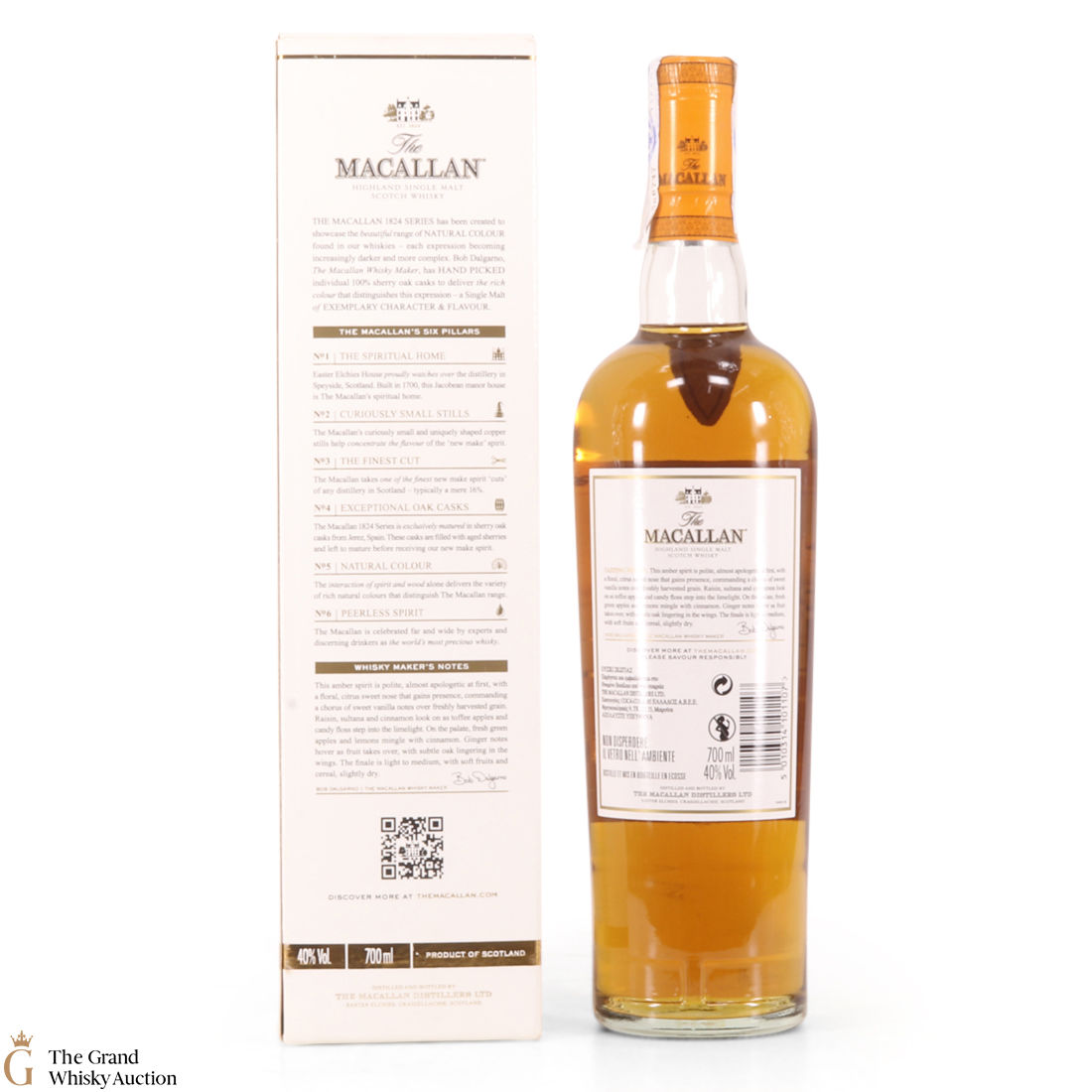 The Macallan 1824 Series celebrates natural colour. The most distinctive and defining characteristic of Macallan is the sherry-seasoned oak casks that are used to mature the whisky. This series shows commitment to 100% natural colour, drawn from wood. The colour of each expression becomes deeper as the range progresses.