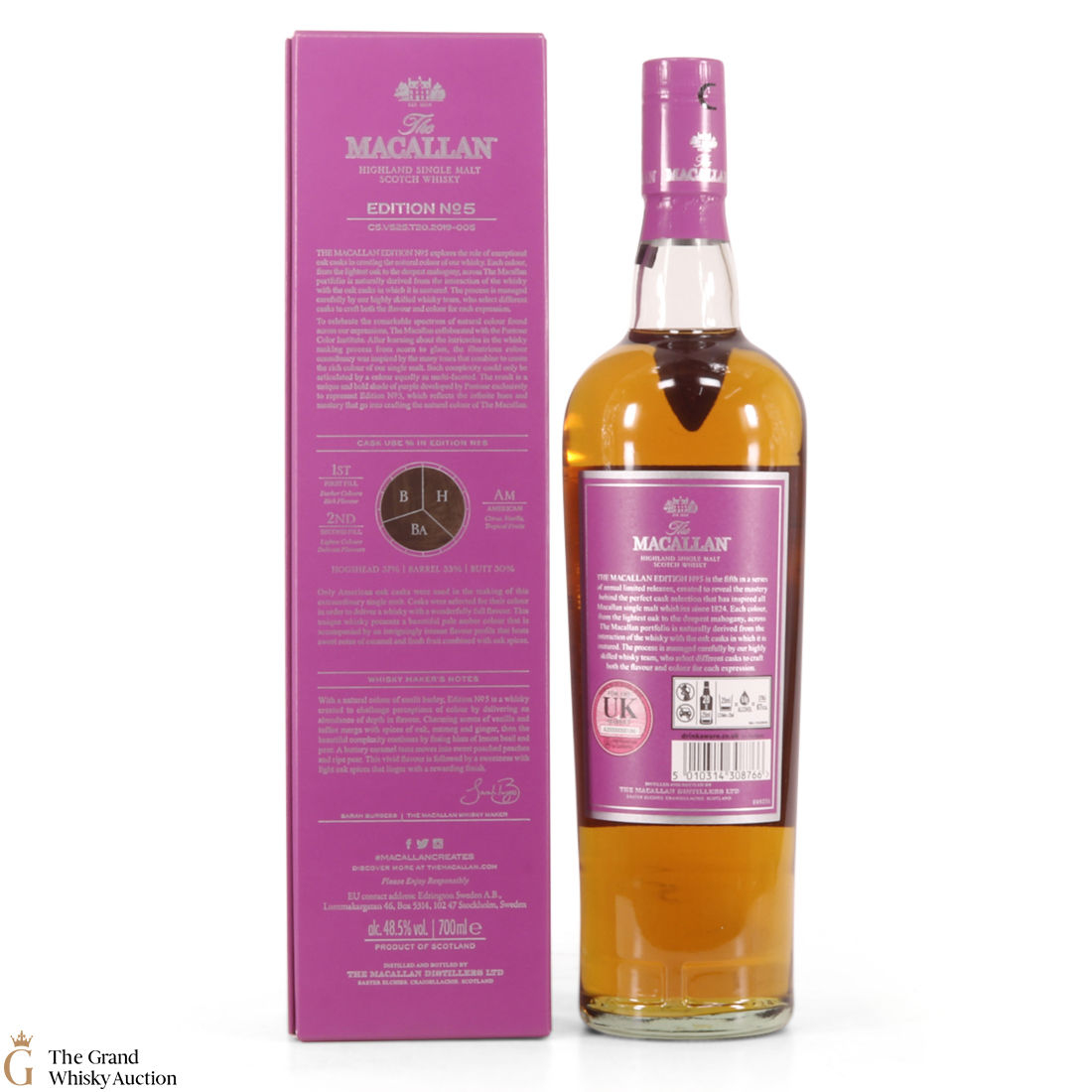 The fifth release in the Edition Series from The Macallan, The Macallan Edition No. 5 celebrates The Macallan’s extensive natural colour spectrum and the intricate whisky-making process, in partnership with masters at the Pantone Color Institute™ to create a unique shade of purple that features on the packaging.