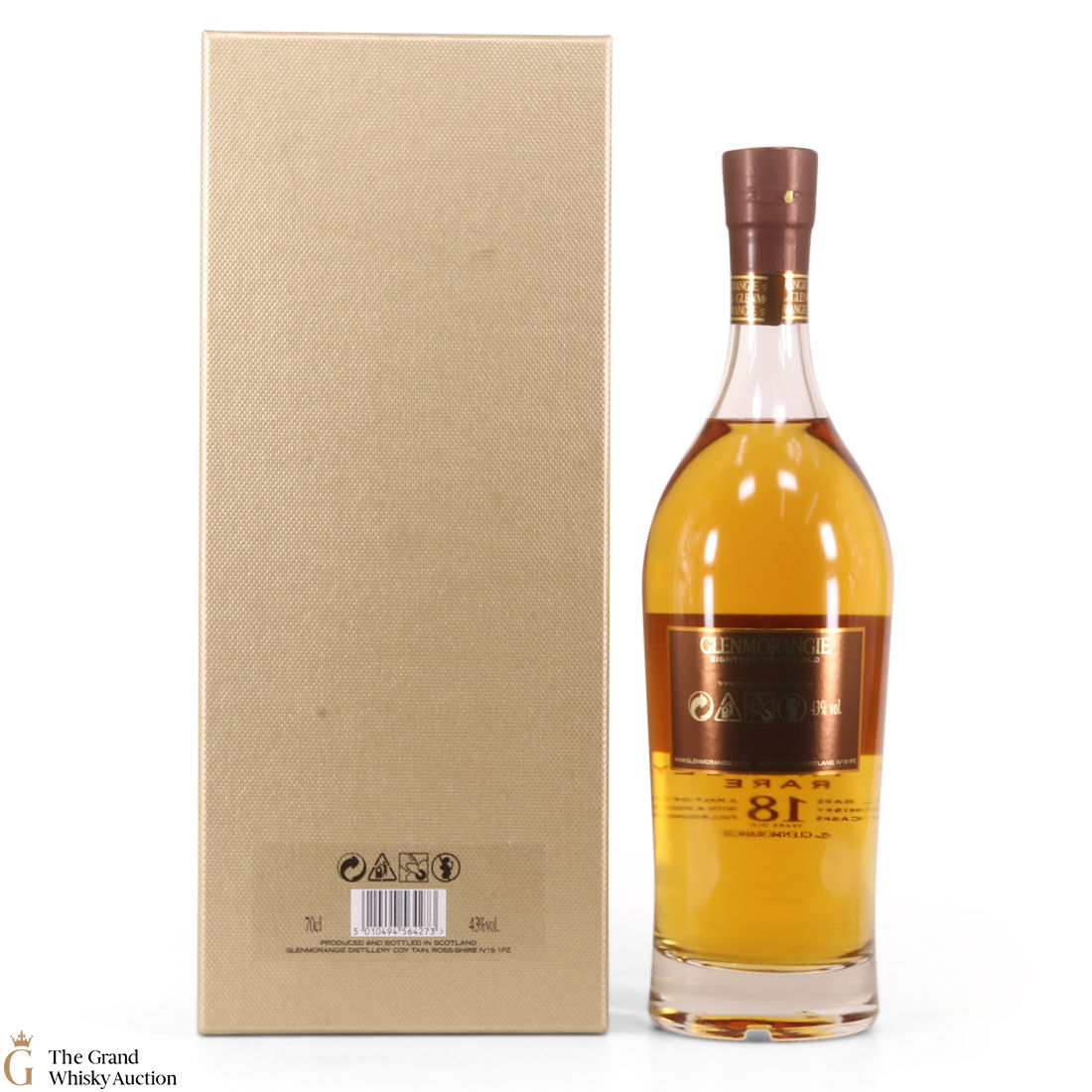 This bottle is an 18 year old Extremely Rare, Highland single malt produced by Glenmorangie. It has been perfected by the sixteen men of Tain who have specially aged this bottle for 18 years in superior oak casks and a period in Oloroso Sherry casks.