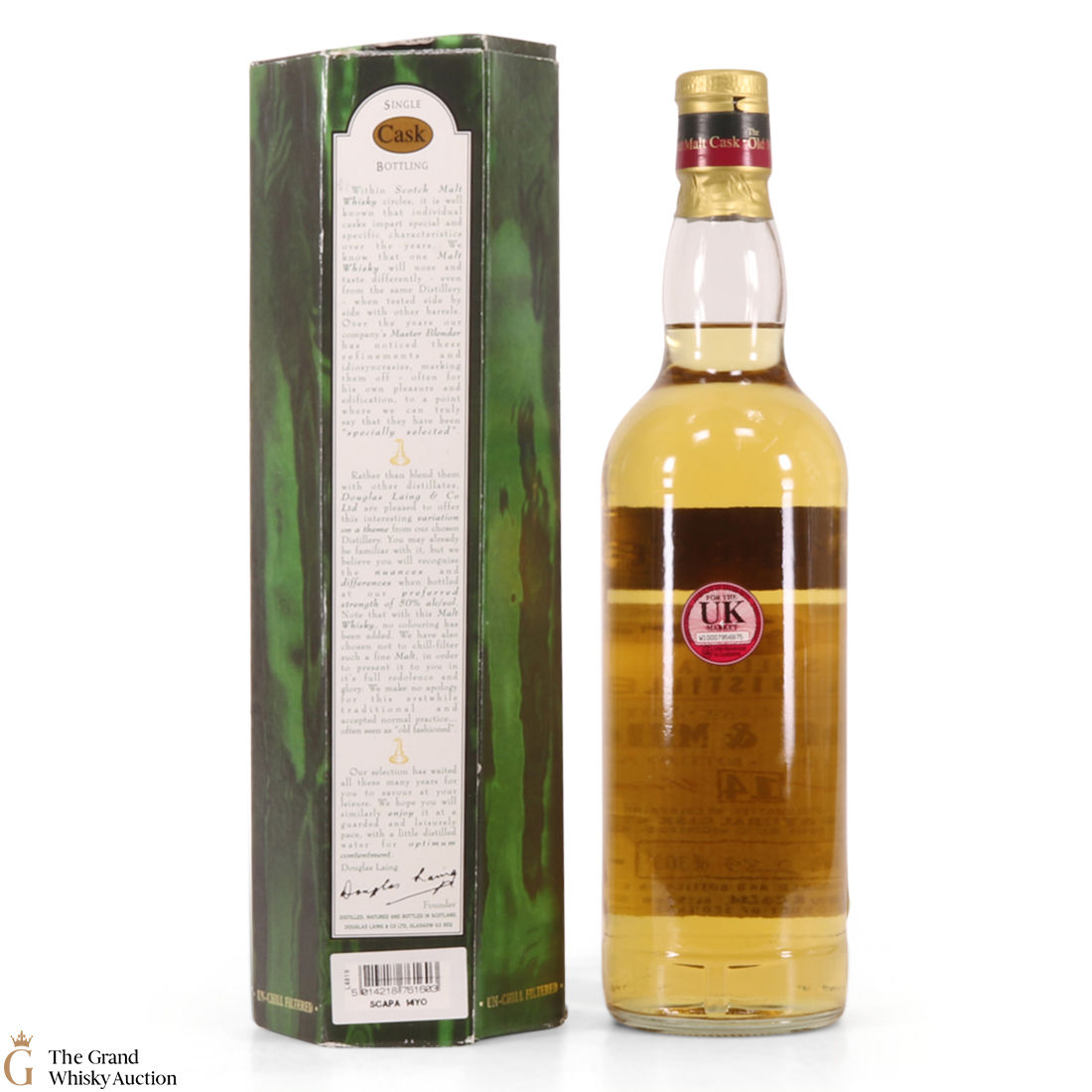 This Douglas Laing Old Malt cask Scapa was distilled in April 1991. It was matured in a single refill hogshead #1428, before being bottled at 14 years of age in August 2005. This is one of just 303 bottles.