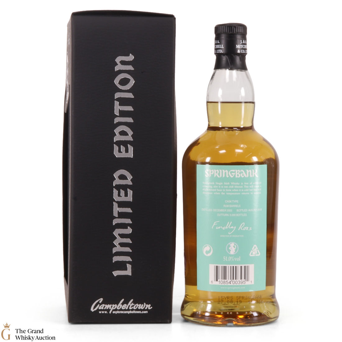 This is a limited edition, single malt Scotch whisky from Springbank distillery bottled and released in 2019. The whisky was fully matured in rum casks for 15 years. Bottled at a cask strength of 51.0% this is one of only 9,000 bottles released worldwide.