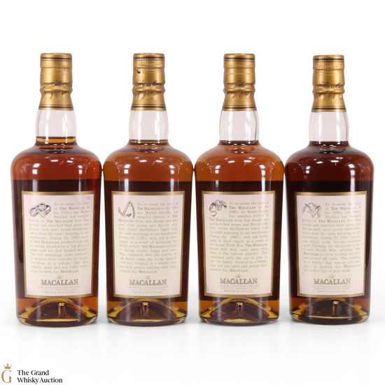 This lot includes a full set of the Macallan Travel Series: 1920s, 1930s 1940s & 1950s, each in their presentation boxes. 4 x 50cl.