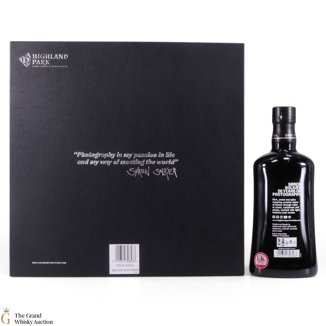 This single malt comes presented in a limited-edition black leather look case, with a book containing 250 photographs by Soren Solker & Highland Park.