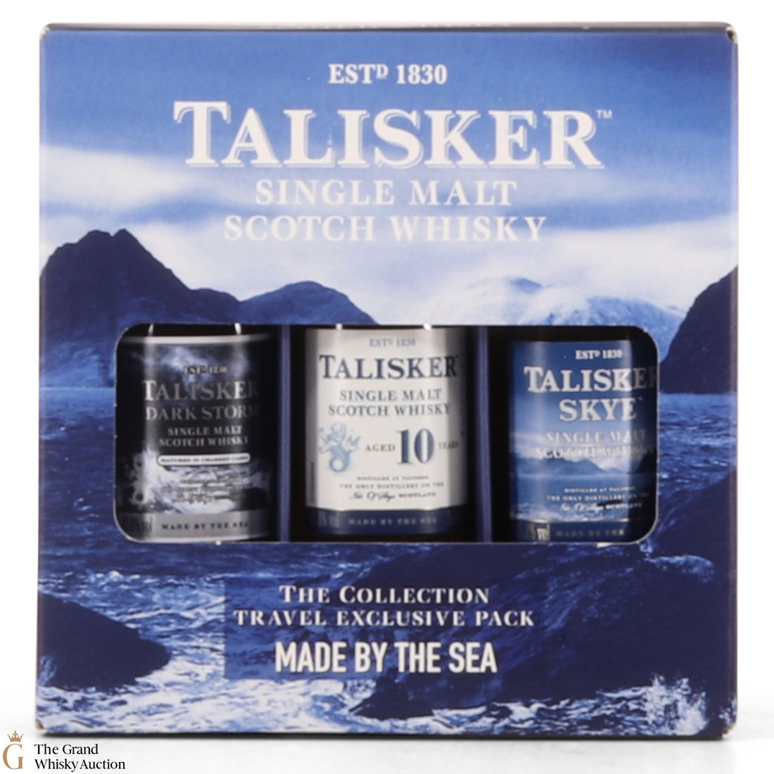 - Talisker 10: an older release of 10 Year Old from Talisker distillery on the Isle of Skye. Aged for a minimum of 10 years in American oak casks. 45.8% ABV, 5cl.