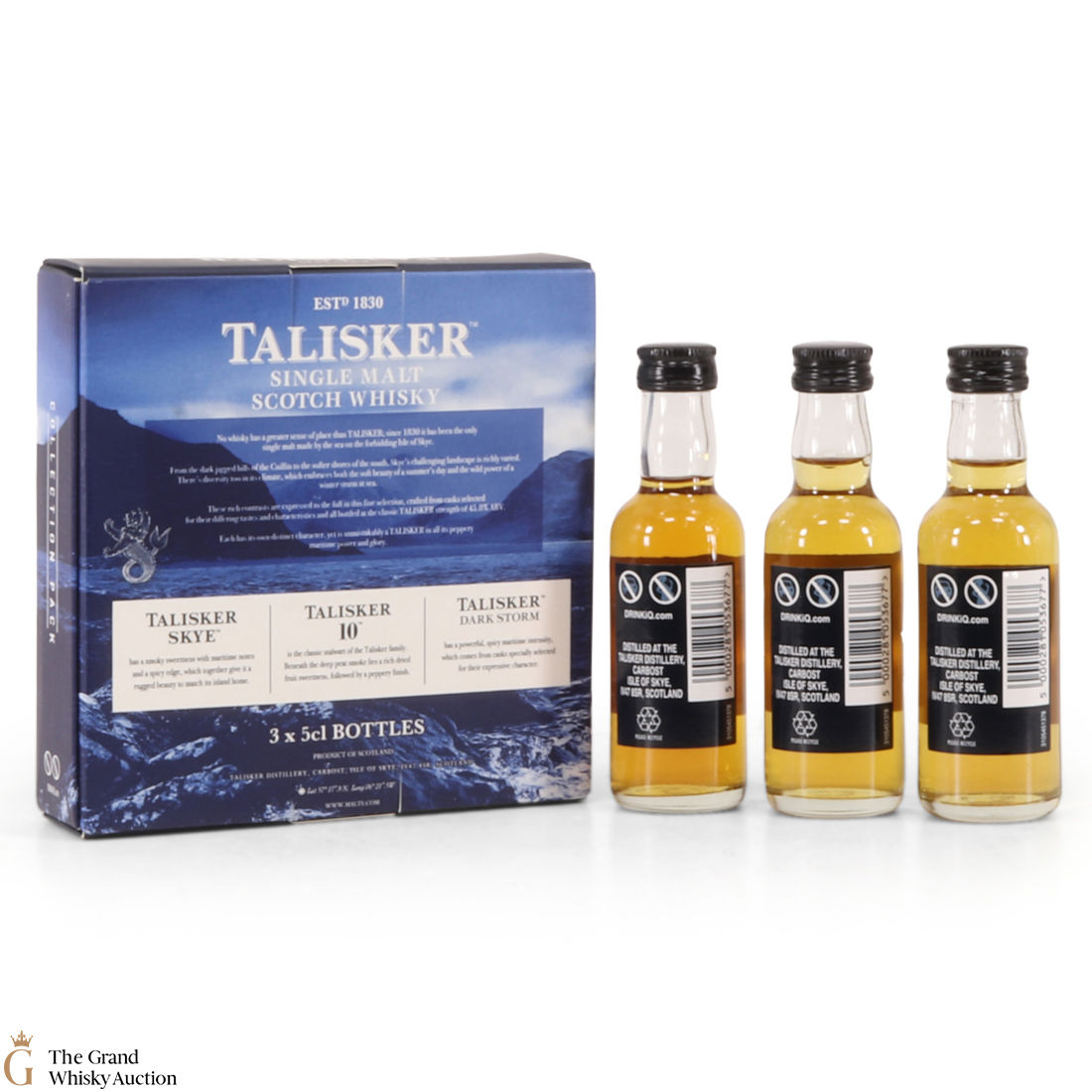 This lot contains 3x 5cl bottles, Talisker Dark Storm, Talisker 10, Talisker Skye.