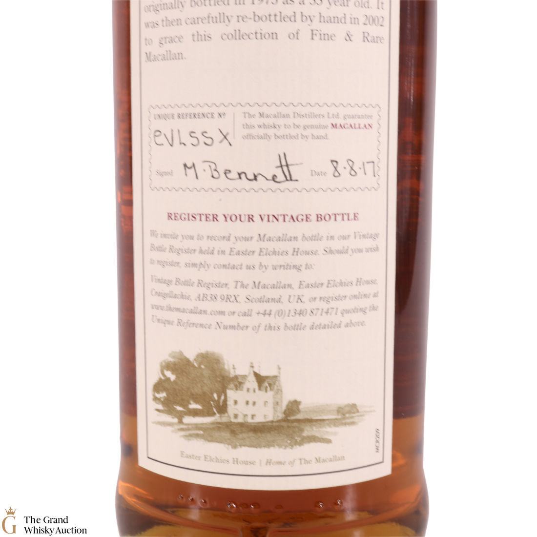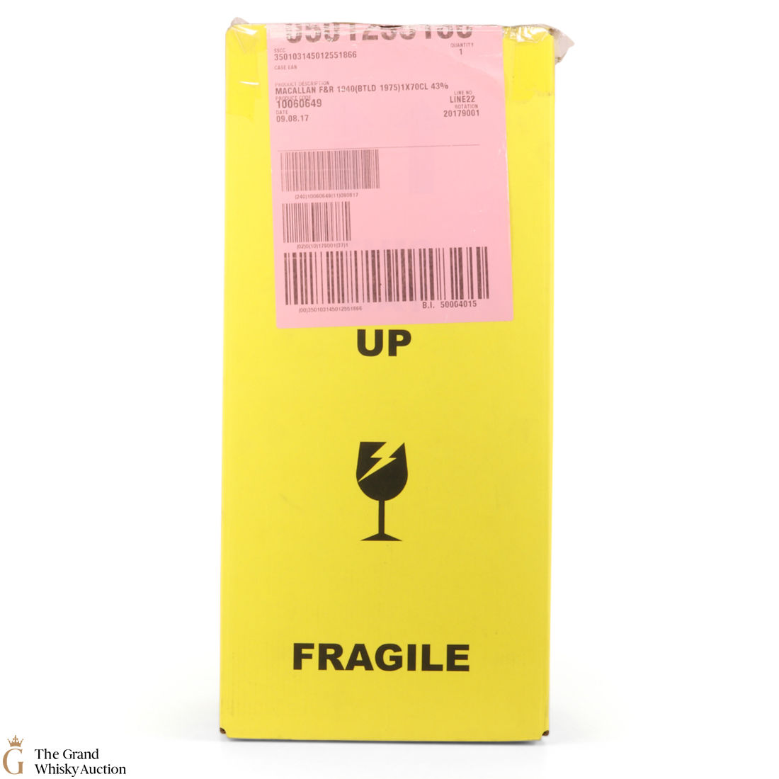Due to the various ages of bottles and their seals, the condition of liquid is at the buyer's discretion and no claim can be lodged against failure/leakage in transit. Loss and breakage cover is available at 3% of the hammer price as standard. If the lot is not insured, no claim can be lodged against the courier or The Grand Whisky Auction for breakage or loss in transit.