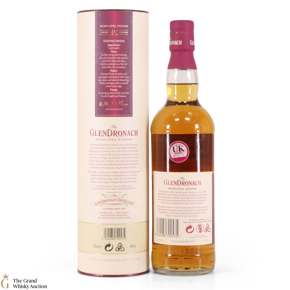 This 15 Year Old Glendronach was matured in European oak before a finishing period in the finest Moscatel casks, the (normally) Iberian fortified sweet wine.