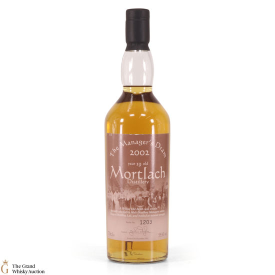 A 19 year old refill cask Mortlach, specially selected by Malt Distillery Managers within Diageo Distilling Ltd. and bottled at cask strength of 55.8% in December 2002.