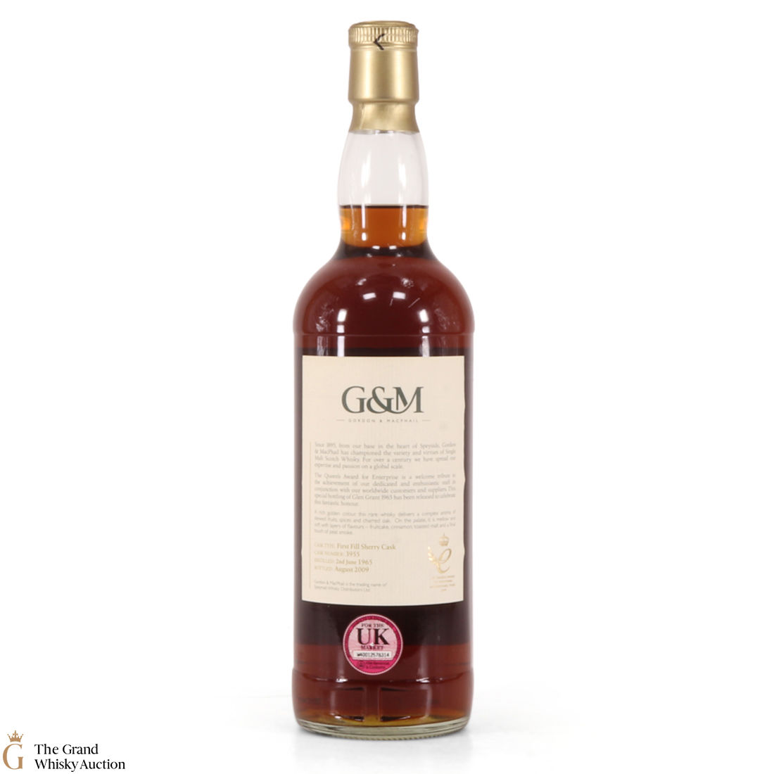 This well-aged Glen Grant was specially bottled to celebrate Gordon & MacPhail being awarded The Queen's Award for Enterprise for International Trade and was given to staff. Distilled in June 1965, it was matured in a first-fill sherry cask and was bottled in August 2009.