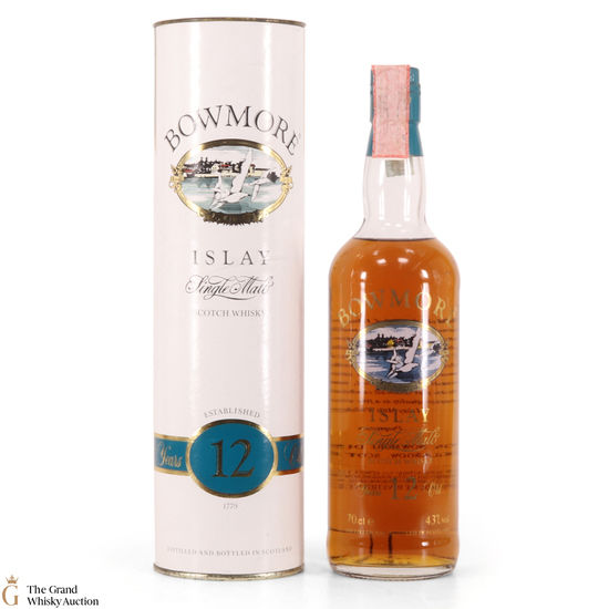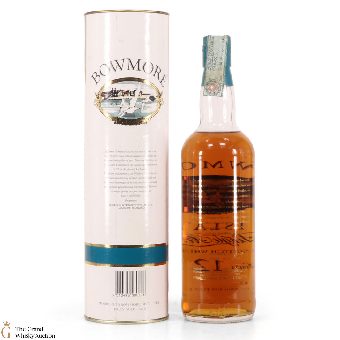 This striking older-style presentation of Bowmore 10 Year Old single malt from the now highly sought screened label bottlings that were released between 1990 and 1995.