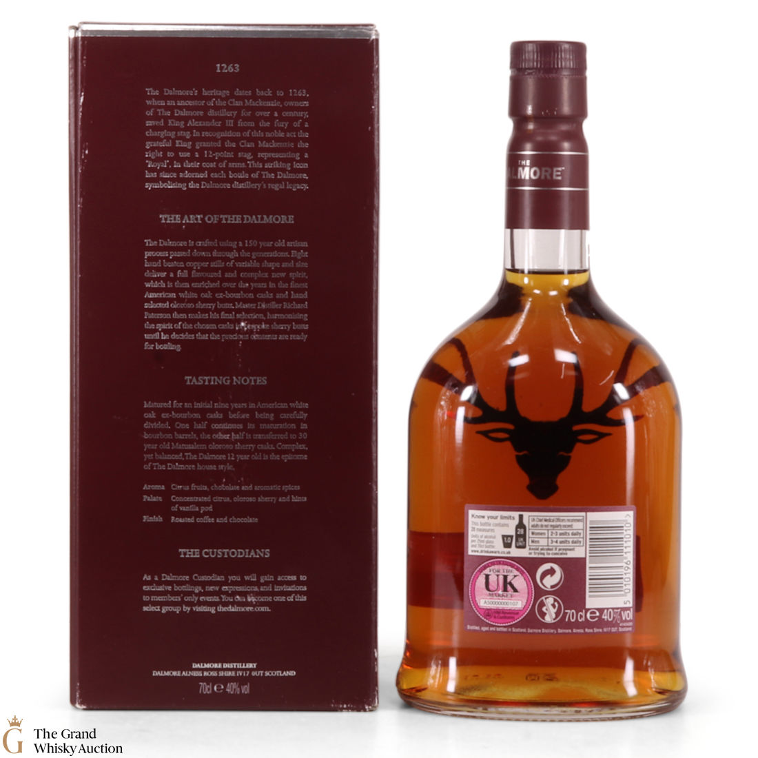 Due to the various ages of bottles and their seals, the condition of liquid is at the buyer's discretion and no claim can be lodged against failure/leakage in transit. Loss and breakage cover is available at 3% of the hammer price as standard. If the lot is not insured, no claim can be lodged against the courier or The Grand Whisky Auction for breakage or loss in transit.