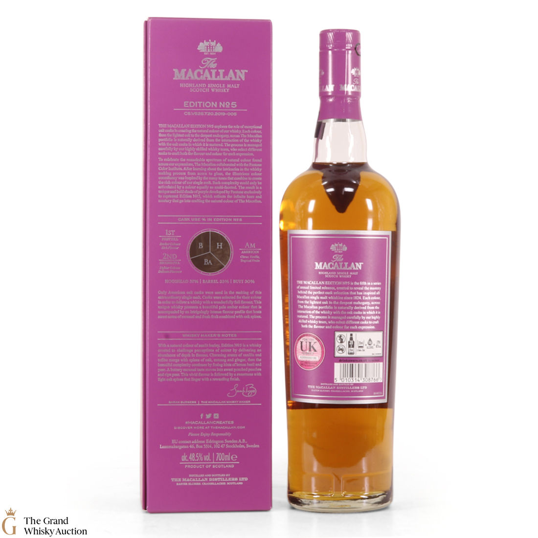 The fifth release in the Edition Series from The Macallan, The Macallan Edition No. 5 celebrates The Macallan’s extensive natural colour spectrum and the intricate whisky-making process, in partnership with masters at the Pantone Color Institute™ to create a unique shade of purple that features on the packaging.