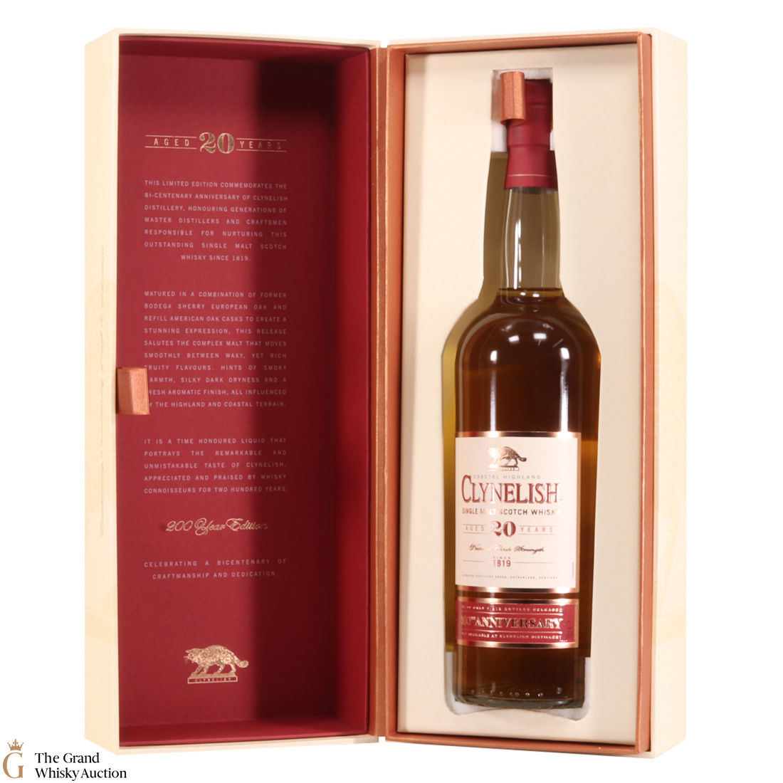 Bottled in the highlands, this 20-year-old single malt from Clynelish was bottled to commemorate the distillery's 200th anniversary. In a beautiful presentation box, this cask strength malt was made only available from the distillery in 2019. It was matured in a combination of Bodega Sherry European Oak and Refill American oak casks to create a stunning expression.