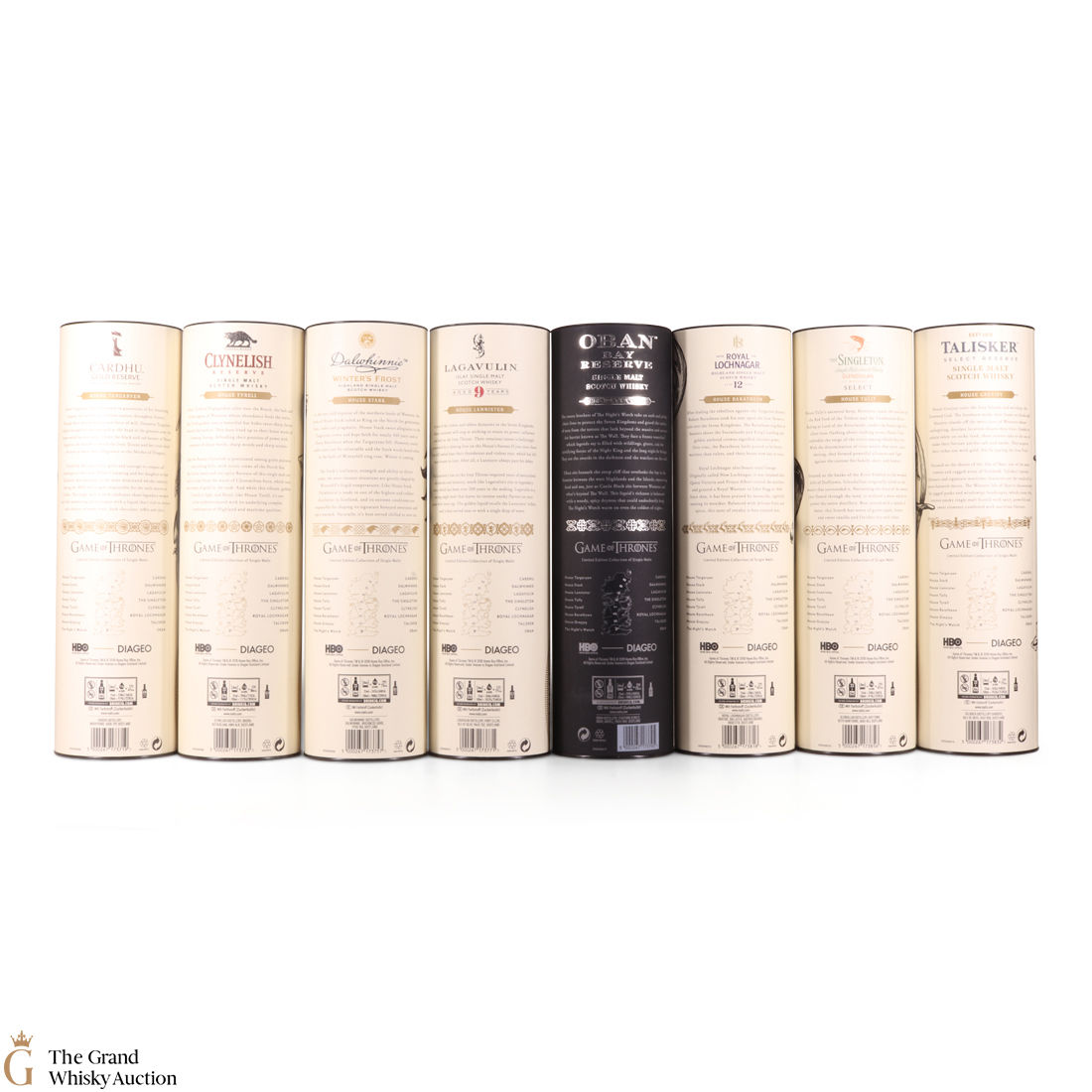Each of the Game of Thrones Scotch whiskies has been paired with a particular house from the seven kingdoms in the television series, plus the Night’s Watch guard.