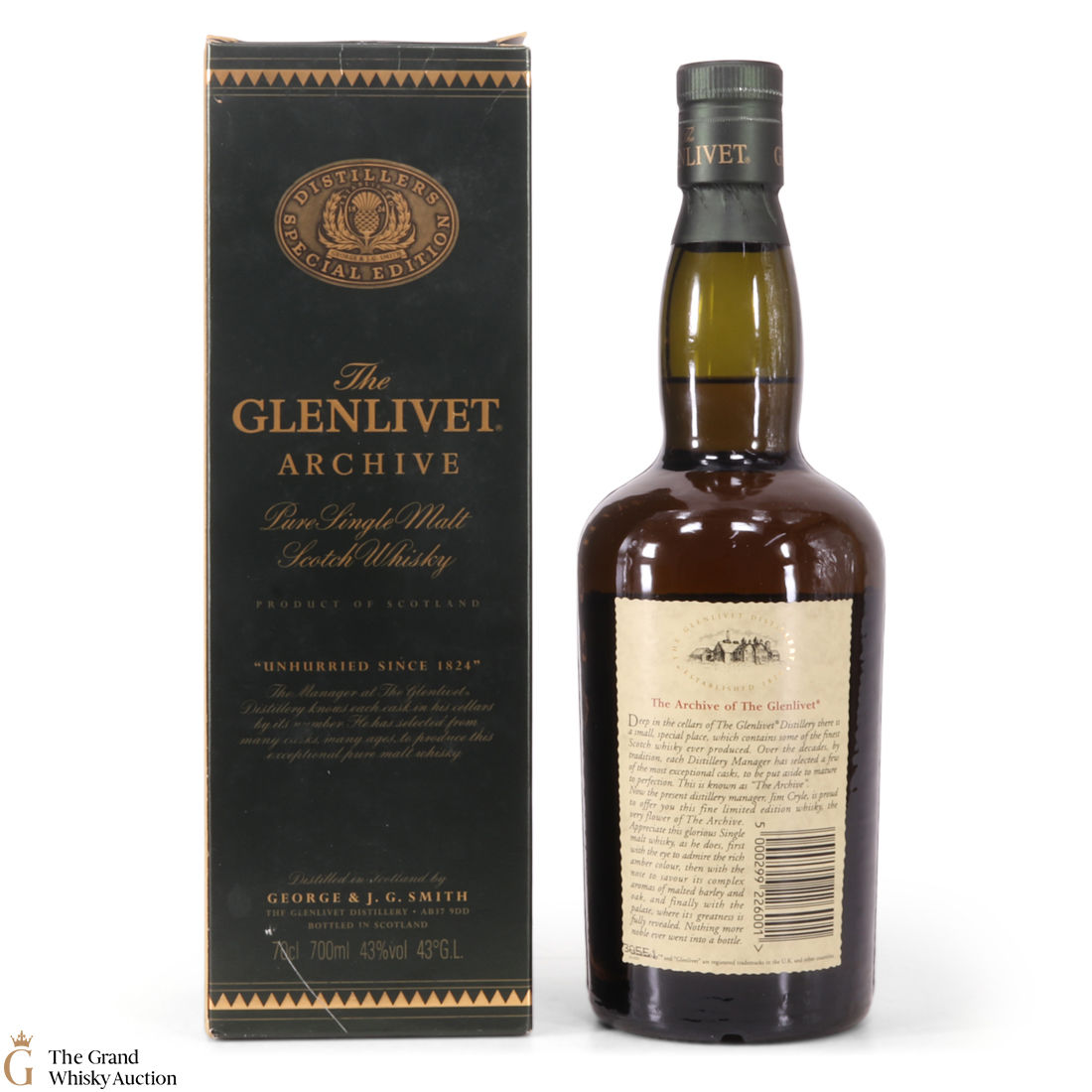 Due to the various ages of bottles and their seals, the condition of liquid is at the buyer's discretion and no claim can be lodged against failure/leakage in transit. Loss and breakage cover is available at 3% of the hammer price as standard. If the lot is not insured, no claim can be lodged against the courier or The Grand Whisky Auction for breakage or loss in transit.