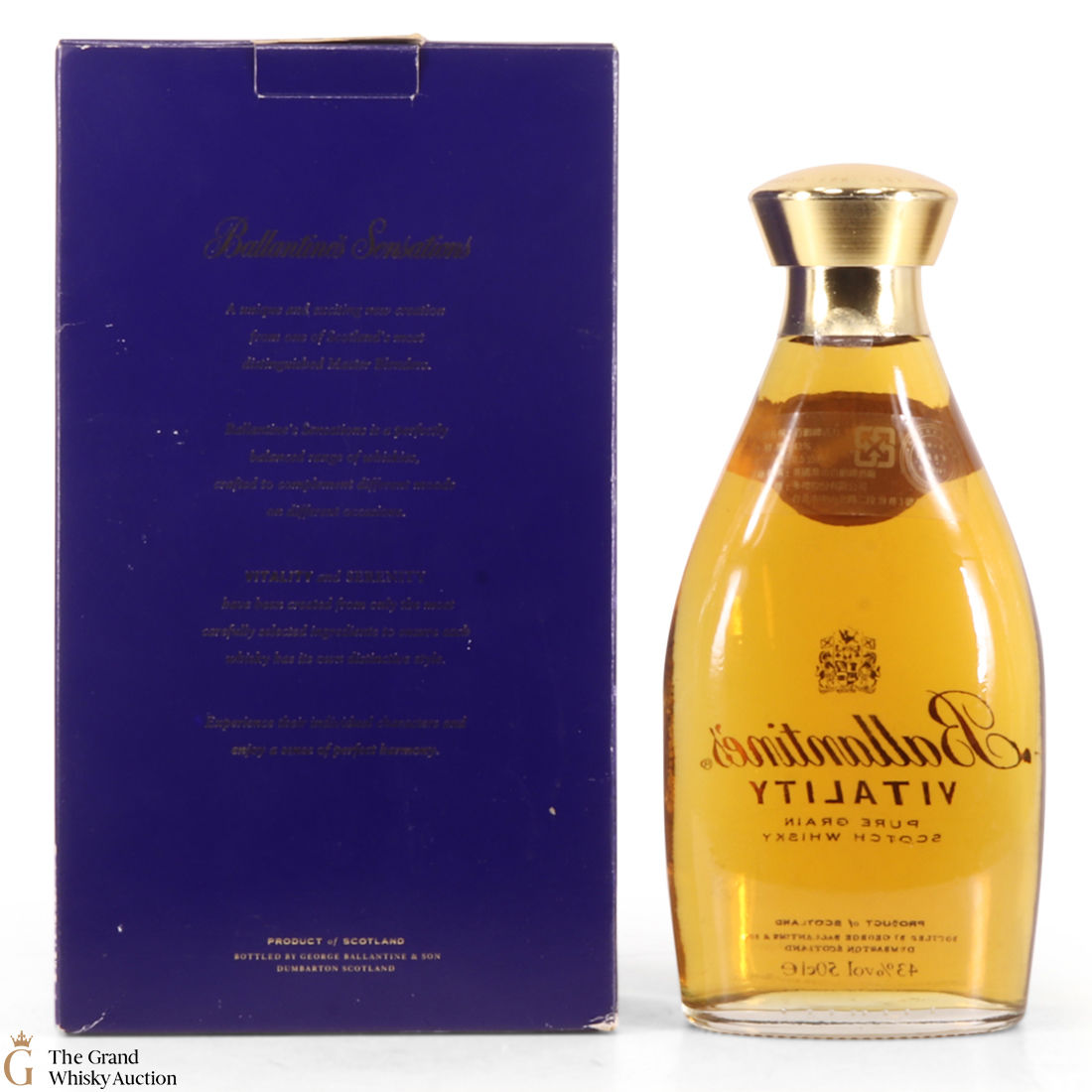 Ballantine's Vitality, a plentiful, pure grain scotch whisky featuring a revitalising taste and distinctive aroma. The Ballantine Vitality Pure Grain bottle was released as part of the Ballantine's Sensation whiskies, as was the Ballantine Serenity.