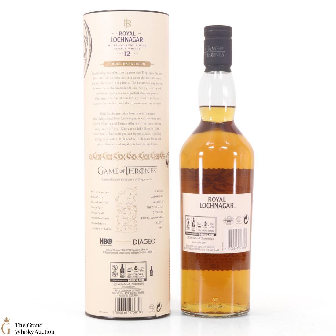 This is a limited-edition 12 year old single malt from Royal Lochnagar and it is part of Diagio's 2018 collaboration with HBO. Each single malt in the series relates to the land of houses of the Game of Thrones television series. The Royal Lochnagar bottle is decorated with a rampant black Stag, the sigil of House Baratheon that once flew on banners above the Stormlands and King’s Landing signifying absolute power.