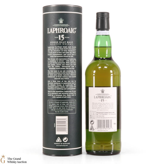 A smart old bottle of Laphroaig, bottled in the mid to late 1990s, after the award of the Royal Warrant in 1994. Laphroaig 15 Year Old is smoother than the robust 10-year-old.
