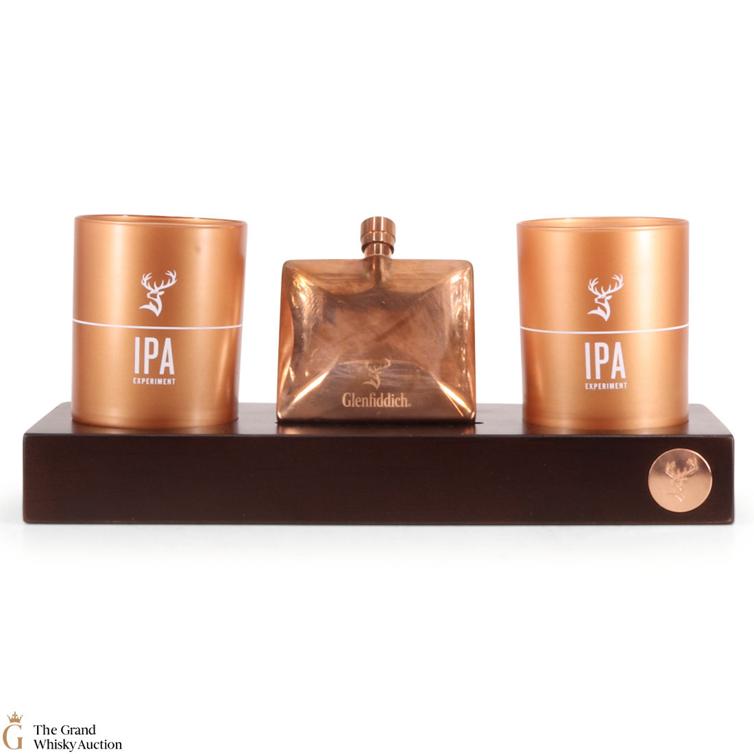 Glenfiddich have really been pushing the boundaries of late with this Experimental Series. Here we have all 4 bottles with a decorative plinth holding two branded glasses and hip flask.