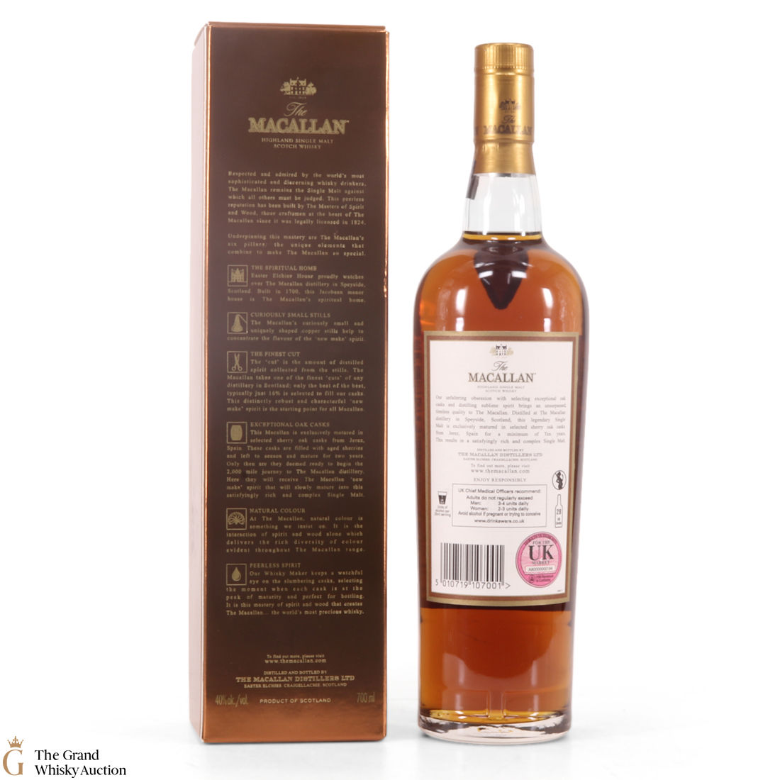 A 10 year old single malt from The Macallan Distillery. It has been exclusively matured in selected sherry oak casks from Jerez, Spain.
