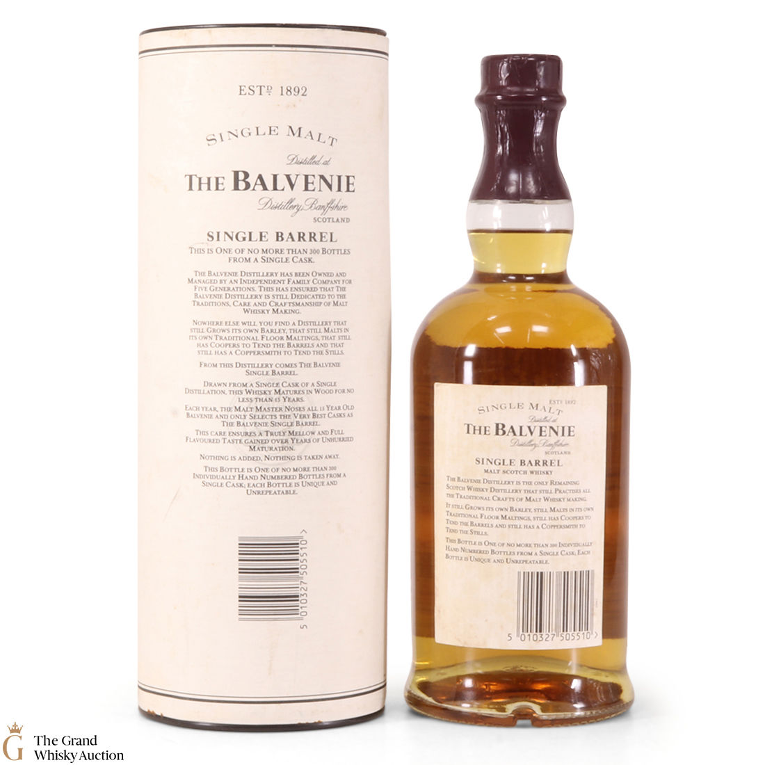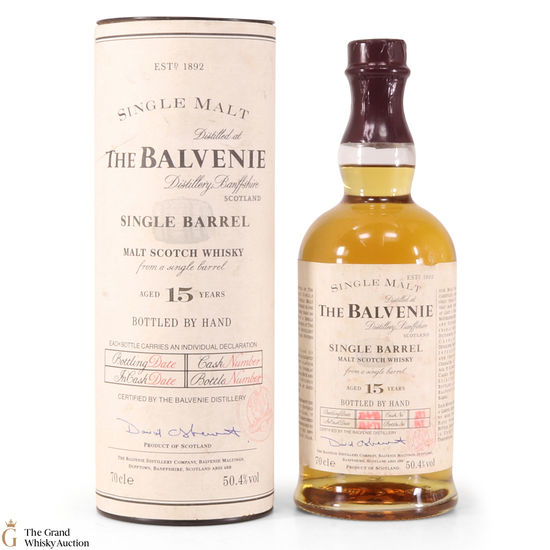 An older edition of Balvenie's classic single barrel series, a 15-year-old single malt, drawn from a single traditional oak whisky cask and bottled by hand.