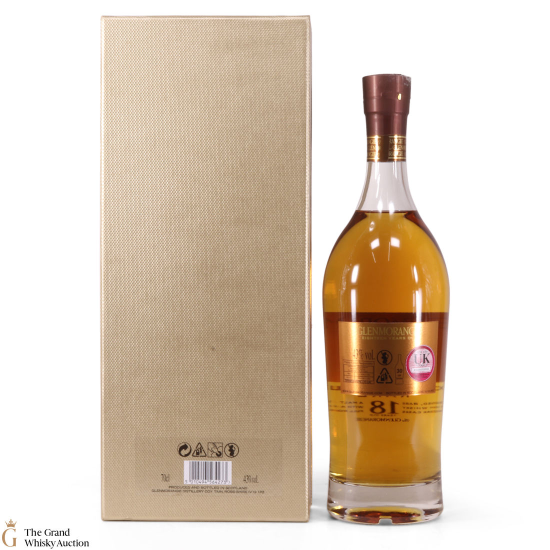 This bottle is an 18 year old Extremely Rare, Highland single malt produced by Glenmorangie. It has been perfected by the sixteen men of Tain who have specially aged this bottle for 18 years in superior oak casks and a period in Oloroso Sherry casks.