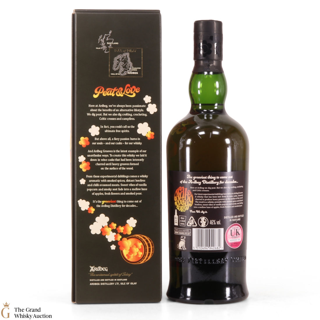 This limited edition Islay single malt was released to mark the 2018 Ardbeg Day at the Islay Festival of Music & Malt. The theme is a throwback to the Island's 1960s spirit, embodying the ideals of 'peat & love'! Ardbeg Grooves is crafted with ex-wine casks that are re-charred to create heavy grooves in the wood, allowing more interaction with the spirit and creating a richer flavour.