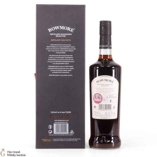 The Bowmore Distillery Manager's Selection is a follow up to the Bowmore Craftsmen's Collection.