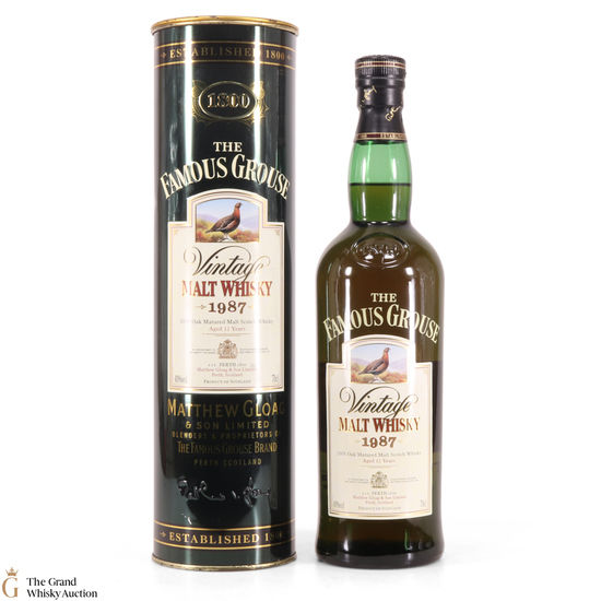 This is a litre bottling of Famous Grouse - 1987 Vintage, which was relased following the success of the 1986 vintage. This vatted malt from Famous Grouse includes Highland Park and Macallan.