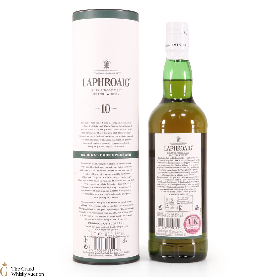 This original cask strength bottling of the medicinal 10 year old from Islay's bestselling distillery, Laphroaig. In making Laphroaig, malted barley is dried over a peat fire. The smoke from this peat, found only on Islay, gives Laphroaig its particularly rich flavour.