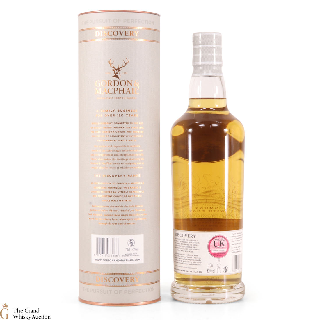 Due to the various ages of bottles and their seals, the condition of liquid is at the buyer's discretion and no claim can be lodged against failure/leakage in transit. Loss and breakage cover is available at 3% of the hammer price as standard. If the lot is not insured, no claim can be lodged against the courier or The Grand Whisky Auction for breakage or loss in transit.