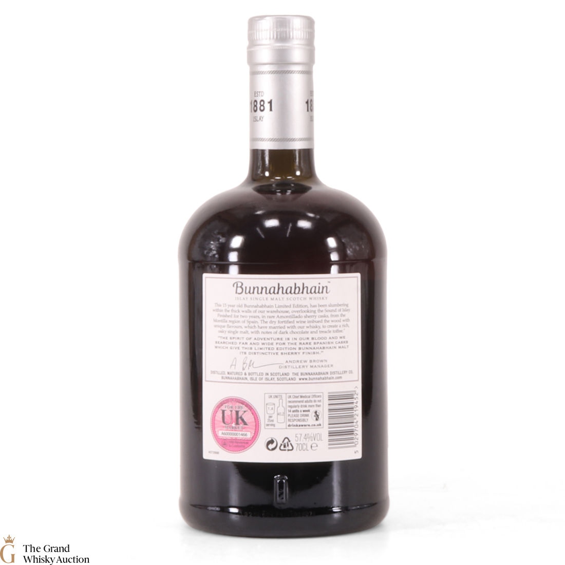 This is a 2019 distillery exclusive from Bunnahabhain Distillery. This Amontillado Cask Finish limited edition started life on the 20th of February 2003 in refill hogsheads before being transferred to Amontillado sherry hogsheads on the 26th of February 2016 where it spent two more years maturing in Bunnahabhain's coastal warehouses.