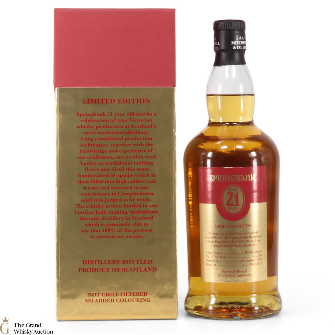 A limited-edition of just 264 bottles released as part of Springbank Distilly's 2015 Open Day. This whisky was aged in a refill claret cask, bottled at 46% ABV.