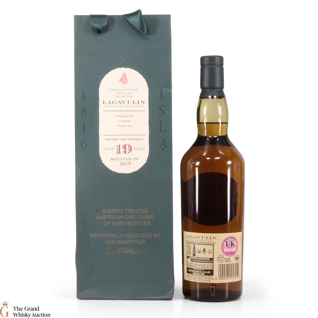 The 2019 Fèis Ìle release from Lagavulin was a 19 year old single malt, matured in three types of casks: refill American oak cask, second Sherry treated American oak cask and a European oak puncheon. 6000 bottles were released.