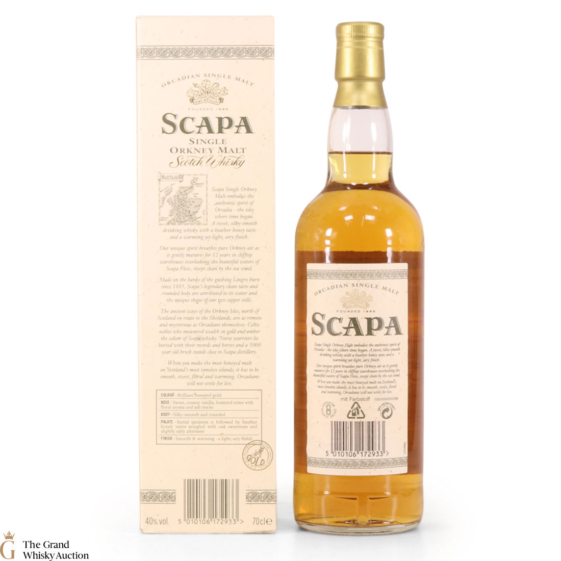 A long discontinued 12 Year Old from the Scapa Distillery in Orkney. It was matured for 12 years in clifftop warehouses overlooking the beautiful waters of the Scapa Flow.