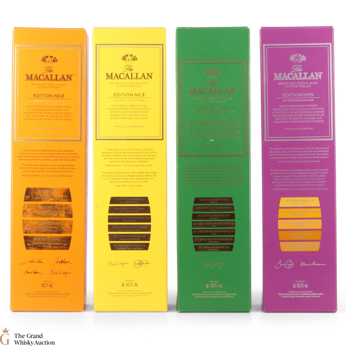This lot brings together the Macallan Edition set to date (minus 1), comprising of Edition no.2, 3 ,4 and 5 in the annual limited edition series.