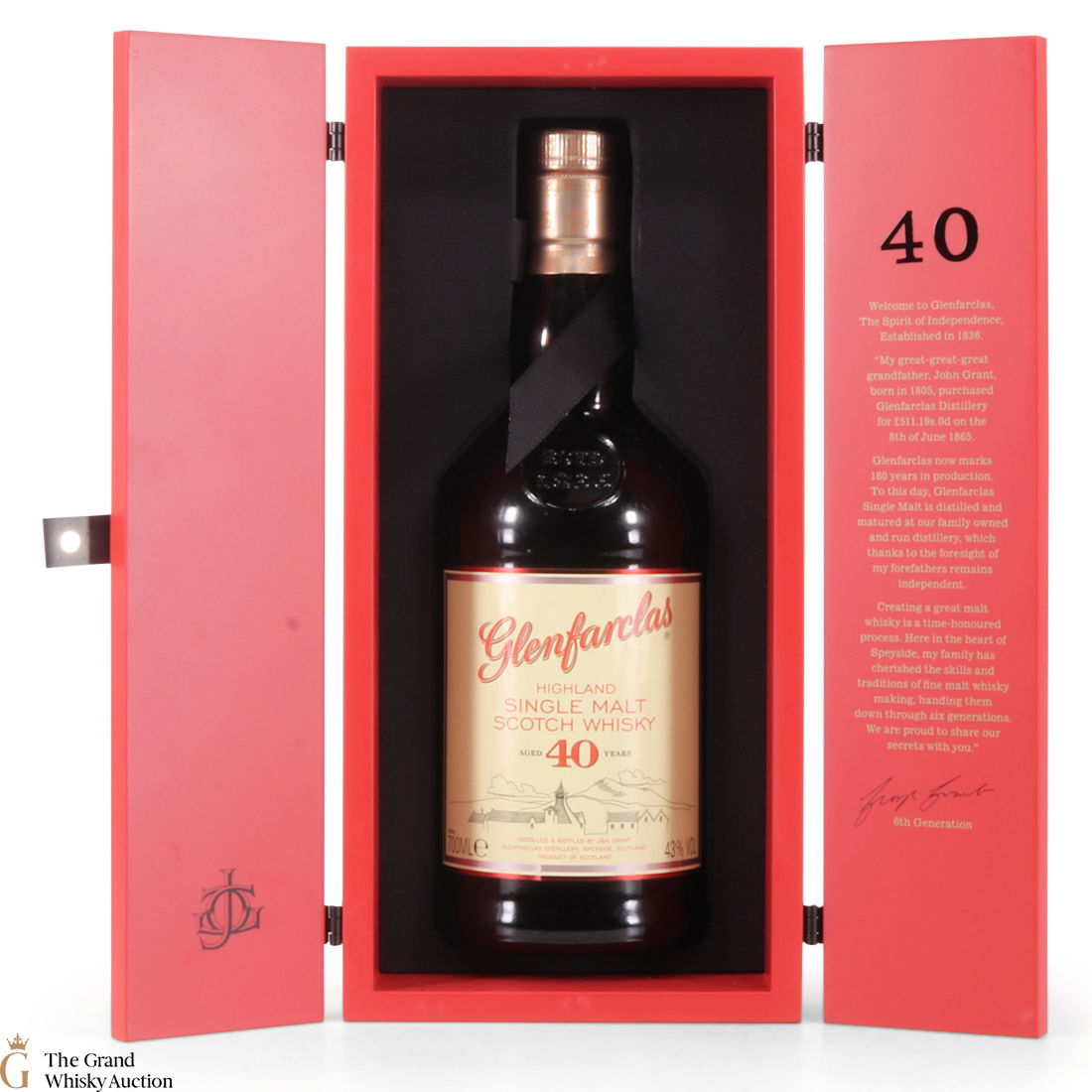 This 40 year old Glenfarclas has the generous sherried notes the distillery is famous for. It comes in an eye-catching box reminiscent of the iconic doors of Glenfarclas' warehouse.