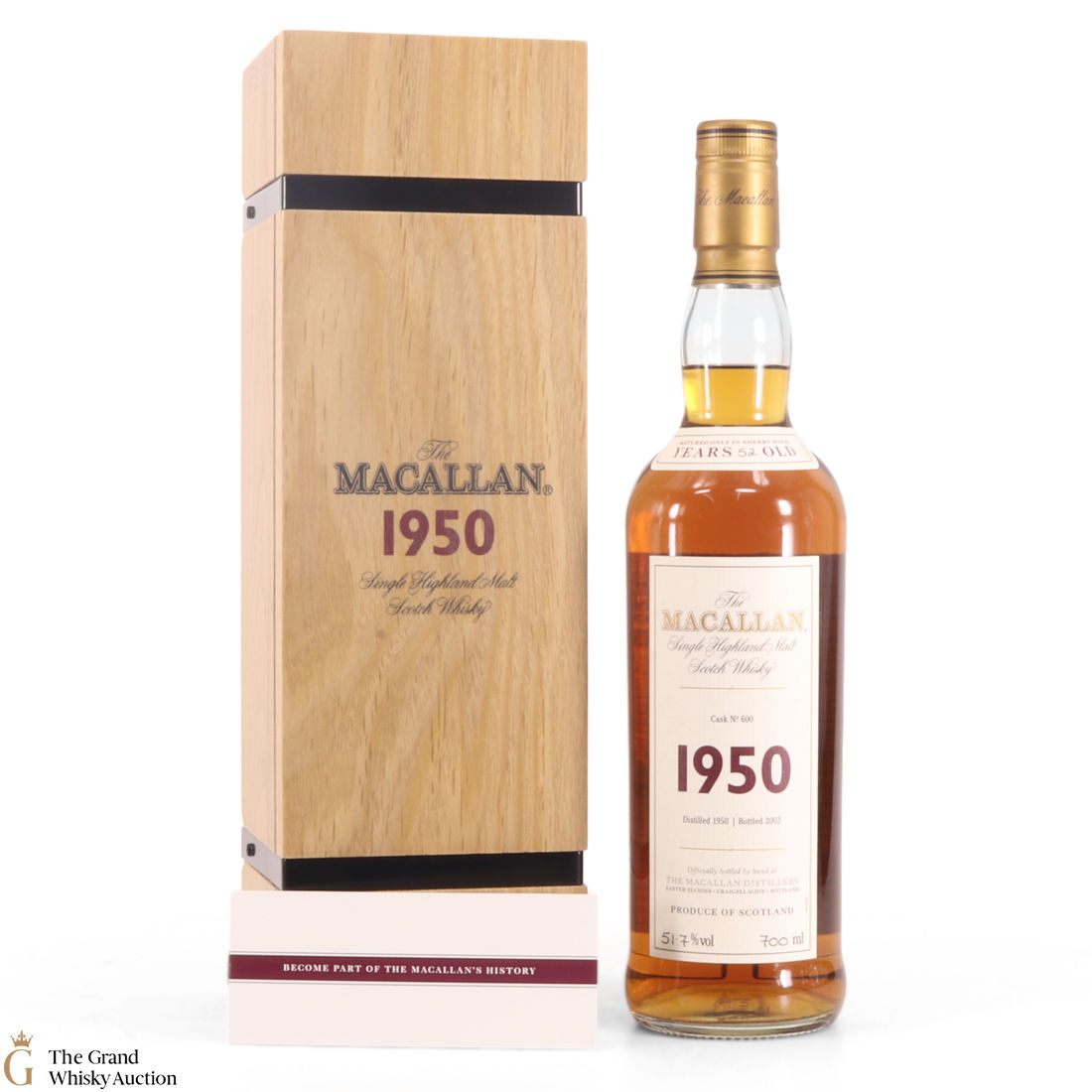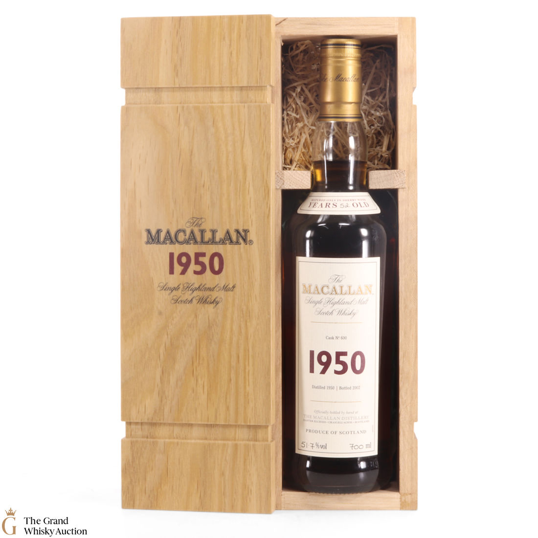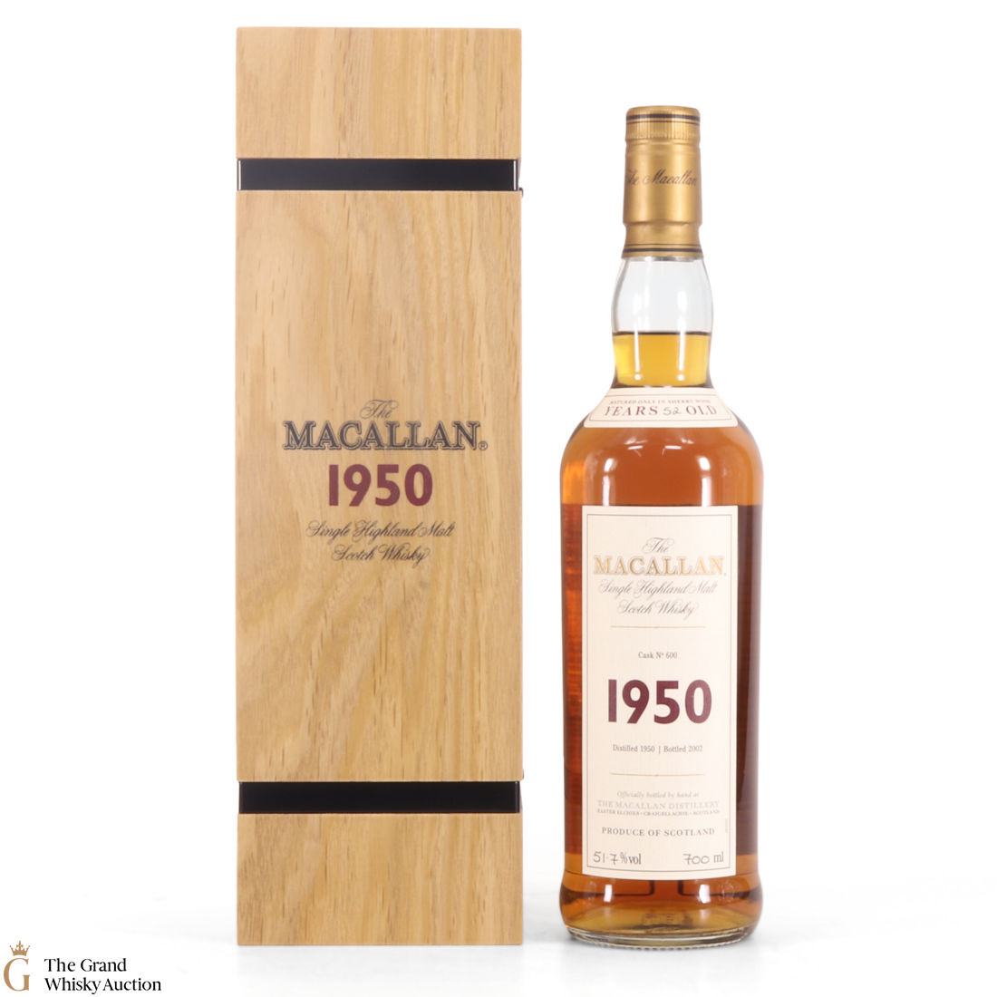 Part of the prestigious Fine & Rare series from The Macallan, this 52-year-old expression was distilled in 1950 and was bottled in from a single second fill sherry cask #600 in 2002. This bottle is an impressive vintage and comes with a smart wooden presentation case. Presented at a strength of 51.7% abv.