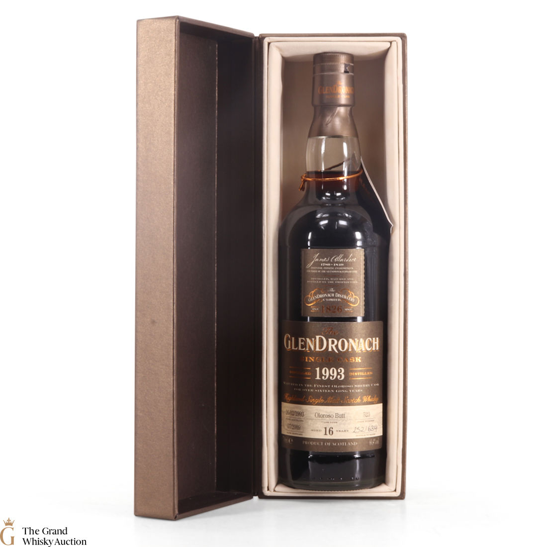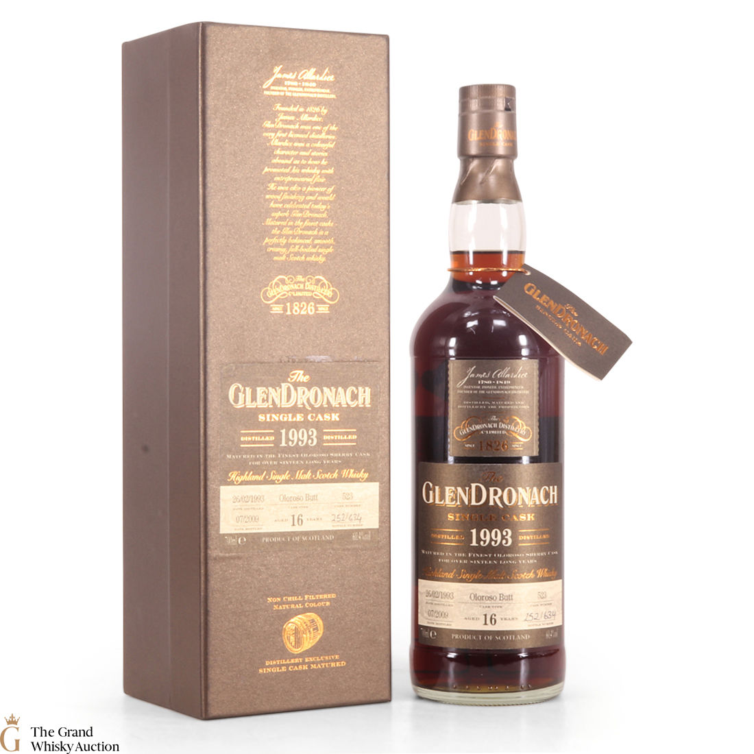 This 16 year old GlenDronach is part of The GlenDronach single cask bottlings series. It is one of the first single cask batch released after the distillery was taken over by Benriach in 2008. This is from the 1993 vintage and was bottled in July 1990 after being matured in Oloroso Butt number 523 for 16 years. This is one of just 634 individually numbered bottles.
