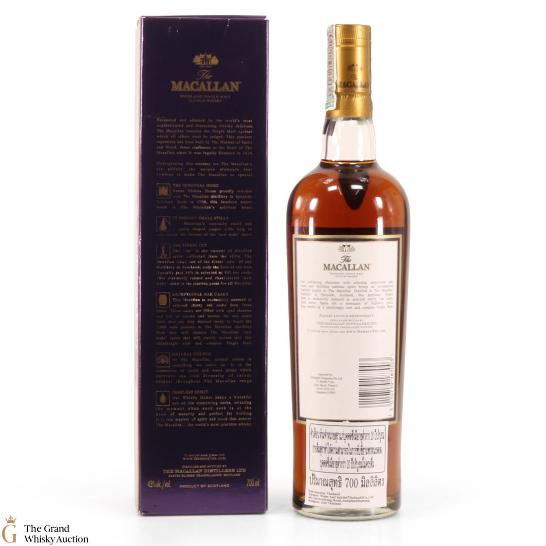 Due to the various ages of bottles and their seals, the condition of liquid is at the buyer's discretion and no claim can be lodged against failure/leakage in transit. Loss and breakage cover is available at 3% of the hammer price as standard. If the lot is not insured, no claim can be lodged against the courier or The Grand Whisky Auction for breakage or loss in transit.