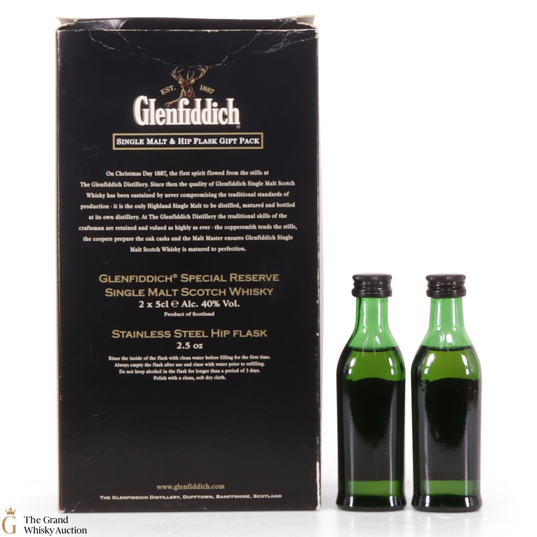 This lot includes 2 x 5cl bottlings and a branded hip flask.