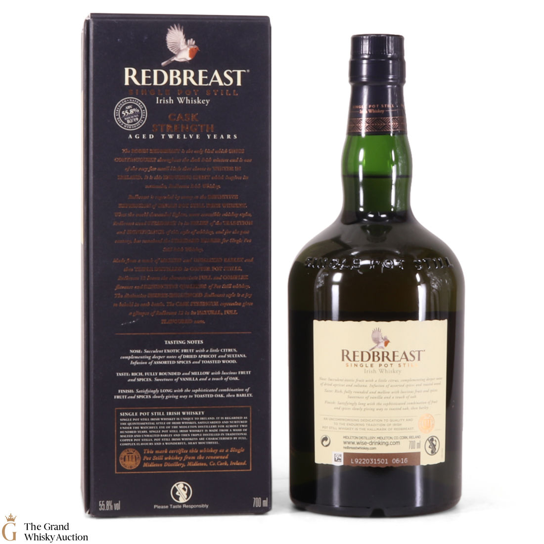 This is the second batch of Redbreast Cask Strength released in 2019. Bottled at 55.8%, this 12 year old single pot still Irish whisky was matured in Oak casks.
